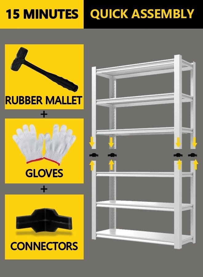 Easy Assembly - The heavy-duty metal shelves for garage storage feature a unique nutless design for quick setup. To assist you, we provide a hammer and gloves, allowing you to assemble them in just 15 minutes.